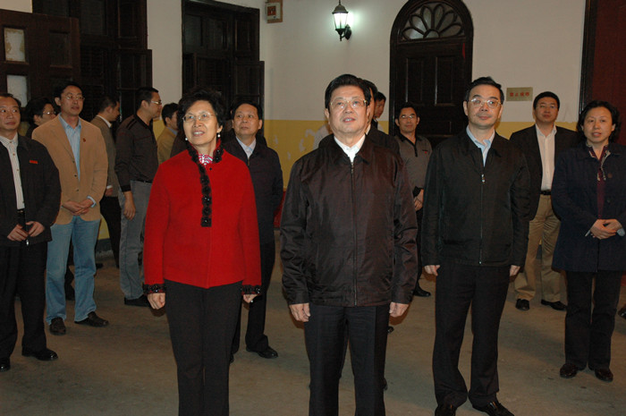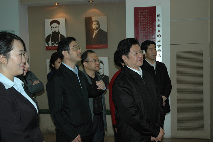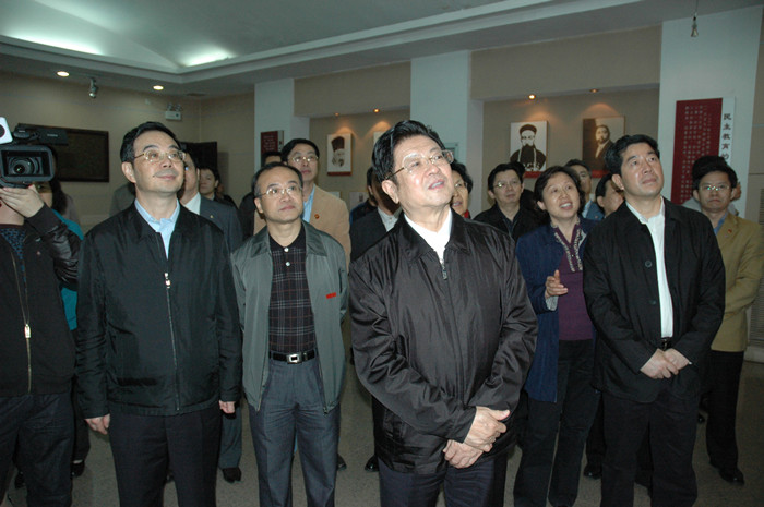 王兆国一行兴致勃勃地参观了我院城南书院校区青年毛泽东纪念馆。在参观过程中,王兆国认真听取讲解员的细致讲解,还不时询问我院的办学历史以及主席在一师求学时的有关情况。彭小奇院长向领导们汇报了我院举办师范教育的有关情况。彭院长说:在国家教育部和湖南省委省政府的大力支持和直接指导下,率先在全省乃至全国举办免费师范教育,为促进湖南基础教育的公平发展做出积极贡献。