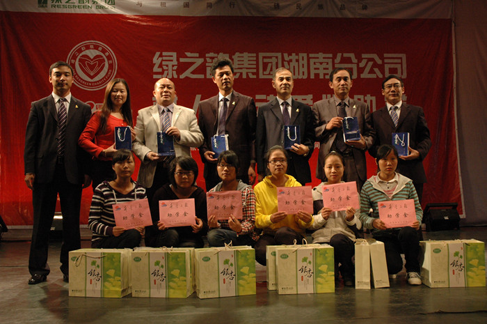 绿之韵集团执行总经理龚振介绍了绿之韵集团的经营理念以及多年来在社会公益事业上所作的不懈努力,并做了《我的梦想我的未来》专题报告,并代表绿之韵集团向长沙市青基会递赠了9万元支票,绿之韵经销商向我院18名品学兼优的家庭经济困难学生每人赠送了3000元现金和2000元物资。
