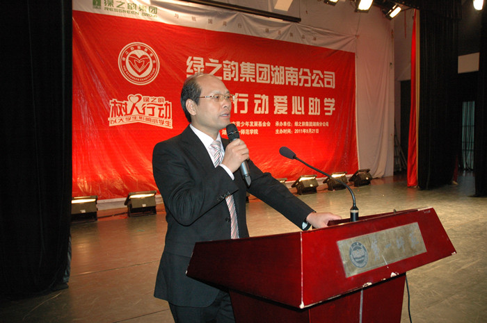 8点30分,仪式准时开始,羊舒麟理事长代表长沙青基会致辞。羊理事长充分肯定绿之韵企业以及经销商们的善举,让广大学子深切感受到绿之韵人带来的温暖,为家庭经济困难学生搭建了一座实现人生理想的桥梁。并对我院受赠学生提出了三点希望,一要学会感恩,二要发愤学习,三要自立自强。