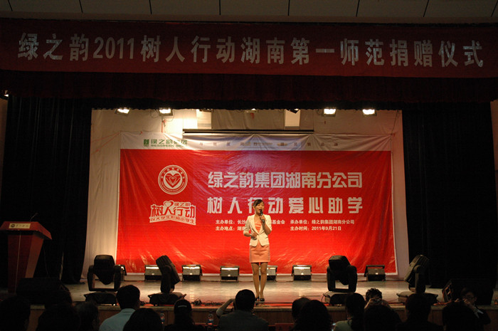 9月21日上午,“绿之韵‘树人行动’·Kaiyun官方网站登录入口捐助仪式”在东方红校区科技楼演播厅隆重举行。绿之韵集团执行总经理龚振,长沙青基会理事长羊舒麟,学院党委副书记金潇明,党委宣传部部长陈志武、副部长舒克斌,学生工作处副处长杨虎智等领导、嘉宾及各系部总支副书记、学工办主任、学生代表400多人出席。仪式由绿之韵湖南分公司陈敏主持。