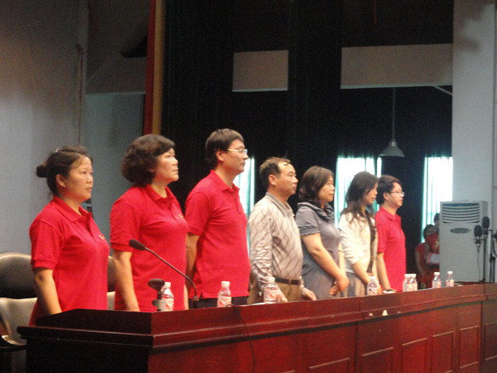 6月7日下午,由文史系党总支举办的“唱支歌儿给党听”——庆祝建党90周年红色歌曲大奖赛暨文史系新党员宣誓、优秀学生党员表彰、爱心助学金颁发仪式在东方红校区科技楼演播厅隆重举行。学院副院长刘志敏,学生工作处处长何文,院团委书记任晓晴,文史系党总支书记雷庆娥、系主任刘澍心、副主任邓绍秋、副书记陈天涯以及近500名师生出席了本次活动并观看了比赛。