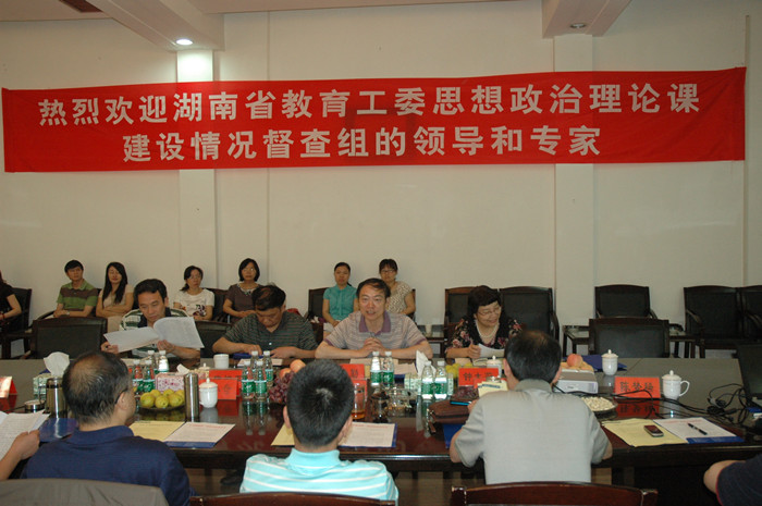 汇报会上,院党委书记詹小平代表学院党委、行政向督查组一行汇报了我院思想政治理论课建设的基本情况。詹书记指出:学院高度重视思想政治理论课的建设,坚持德育教育优先发展,取得了一系列丰硕成果:学院先后被确定为全国爱国主义教育示范基地、湖南省青年毛泽东研究基地和湖南教育科学德育学科研究基地;荣获“全国助残先进集体”、“湖南省五四红旗团委”、“扶贫助学关爱农村孩子课外实践先进单位”和“青年文明号集体”称号;思政部被省高校党建研究会评为先进集体;“形势与政策”课被评为省级精品课程,“形势与政策课程建设的研究与实践”获省教学成果二等奖;彭月英同志被评为省思想政治理论课优秀教师标兵,钟佩君、张志新等被评为省级先进个人,并有10余篇德育论文获省级一等奖。总结我院落实《高等学校思想政治理论课建设标准》的情况,主要表现在以下五个方面:一是建立领导体制,理顺工作机制,提供有力保障;二是加强教学管理,完善课程建设,落实教学环节;三是精选教师队伍,加强师资培训,提高水平;四是加强学科建设,凝练学科方向,提高科研水平;五是打造精品课程,挖掘传统资源,提高德育实效。