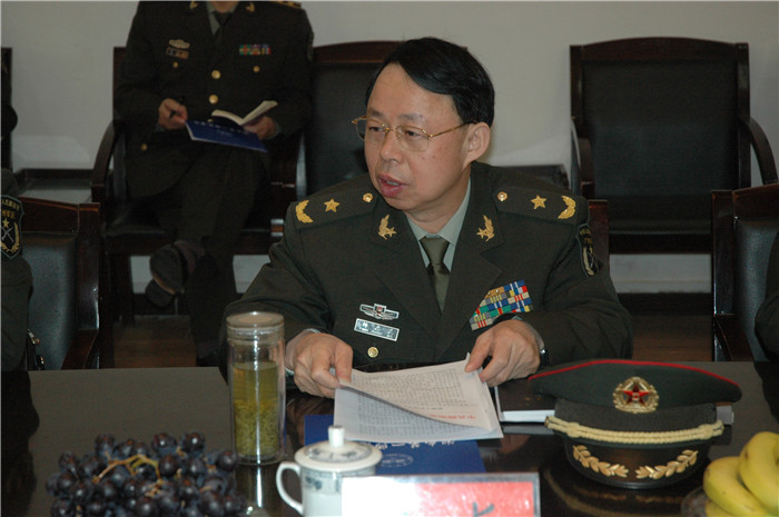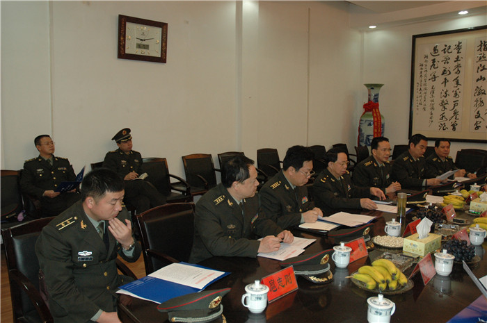 杨政委一行首先饶有兴致地视察了我院军事理论教研室,并听取了我院武装工作情况的汇报。汇报会由院长彭小奇主持,党委书记詹小平汇报了情况。