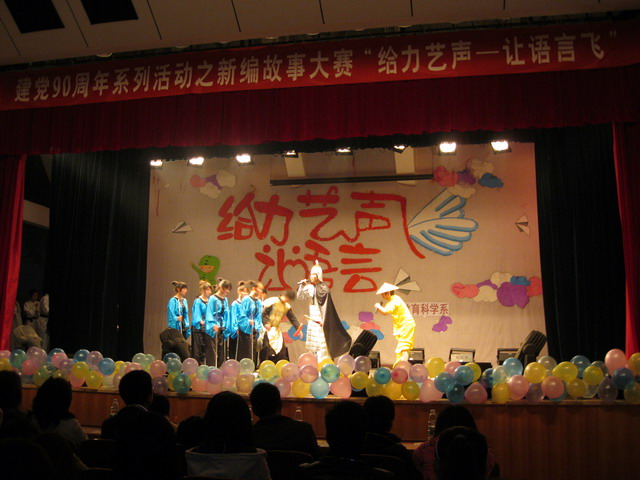 4月14日晚,我院教科系建党90周年系列活动之“给力艺声,让语言飞”第二届故事新编大赛决赛在东方红校区科技楼演播厅隆重举行。院党委宣传部部长陈志武、学生工作处处长何文、院团委书记任晓晴、教科系党总支副书记袁向荣、院团委副书记罗祥云及教科系所有专职辅导员应邀观看了本次比赛并担任比赛评委。