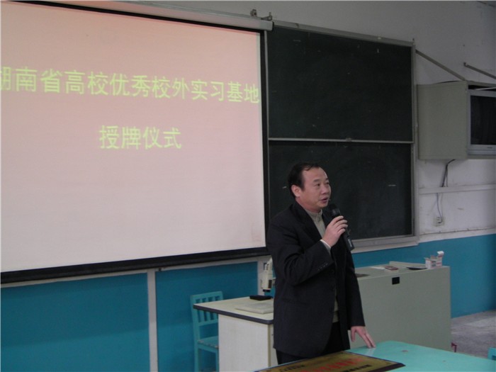 长沙市开福区教育局组织人事科肖先明科长、新竹小学陈利球校长、钟巧副校长、我院驻新竹小学实习带队教师肖弋副教授和实习队全体师范生参加了授牌仪式。在授牌仪式上,刘志敏副院长和肖先明科长发表讲话。肖先明科长在讲话中对我院多年来为开福区的基础教育事业培养了大量优秀的教师和管理人员表达了衷心的谢意,并表示开福区教育局将一如既往地重视和支持我院的教育实习工作,也希望能与我院进一步加强交流与合作,在开福区建设更多的优秀教学基地,共同为基础教育事业服务。刘志敏副院长在讲话中也表达了对开福区教育局、新竹小学的感谢,并指出教育实习是教师成长的重要实践教学环节,而优秀实习教学基地是教育实习工作顺利开展的重要保障,学院将进一步加强教育实习基地的建设和管理工作,并鼓励实习学生充分利用实习基地良好的教育教学资源,强化教师技能的训练,练就本领,服务社会。