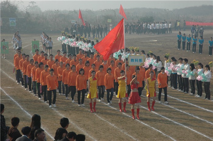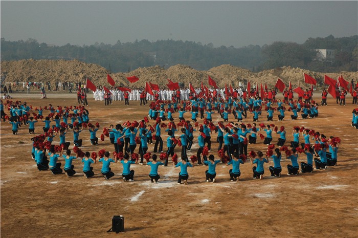 为了发动全院学生能共同融入阳光体育运动,增强全员参与体育的积极性,同时,也能很好地实现与其他综合性高校、社会大型体育盛事接轨,高扬时代体育的文化大旗,我院体育系专业老师不吝牺牲平时的休息时间,排练出了彩旗、武术、交谊舞、啦啦操、健美操、跆拳道等大型团体操。气势恢宏,田径场成就了欢乐的海洋;激情飞扬,田径场汇聚了时代的精灵;青春阳光,田径场奏响了大学生华美的乐章。第一时间目睹,第一现场经历,青年学子的大型表演,让在场的每一个人嘴跟着唱,手跟着挥,脚跟着跳,这就是最抢眼的视觉盛宴,这就是最激越的精神大餐。