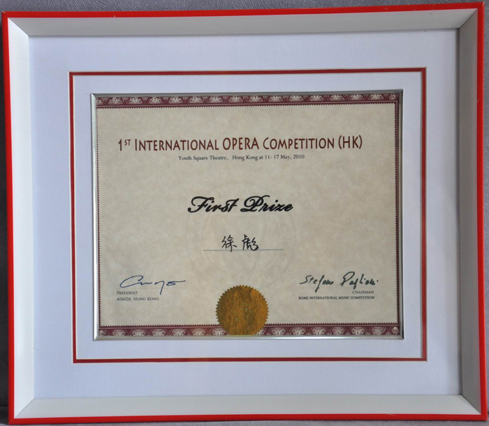 事隔十天,即2010年5月28日至29日,徐彪老师又获得文化部指定的重大国际声乐比赛“2010意大利阿尔卡莫国际声乐比赛中国赛区选拨赛”入围奖,入围今年9月在意大利阿尔卡莫的决赛。