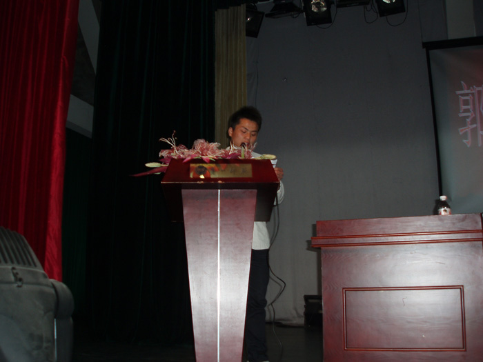 报告会开始,院党委宣传部陈志武部长老师首先系统地介绍了郭俊同学在人民群众生命受到严重威胁的危机关头,不畏严寒,不怕牺牲,挺身而出抢救落水儿童的先进事迹,并充分肯定了郭俊同学的英雄壮举。陈部长指出,当代大学生是我国社会主义现代化建设的后备军,但是由于受当今社会中一些不良因素的影响,我们这一代大学生在面对时代所赋予的责任时,却表现出迷茫和浮躁,甚至精神缺失,而郭俊同学的英雄事迹以及所表现出来的精神正是我们广大大学生心里所呼唤的,所需要的。他是我们今天年轻学子的榜样,我们要好好学习。陈部长说,在当今高校中,都高度重视校园文化建设,校园文化建设的重点内容就是校园精神文化建设,也可以说是校园文化的最高层次。在对学生进行精神文化培育的过程中,运用榜样进行示范,可以起到事半功倍之功效。陈部长最后强调,以后,我们学院要多开展类似的报告会,让这些先进事迹和先进人物来感染我院的每一位师生,推动我院的校园文化建设。