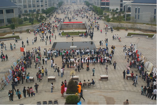 整个展区分为书法、绘画和摄影三个区域,共展出近一百五十件作品。为了开阔我院学生的视野,促进艺术交流,这次作品展不仅特邀了省级知名书法家和部分高校书画爱好者的作品参展,而且还特邀了陈共华、刘木、陈泽忠三位嘉宾挥毫泼墨,现场献艺。截止下午六点多,广场上人头攒动,观展的同学依然络绎不绝,书法爱好者还手拿宣纸排着三列长长的队伍,等候嘉宾为自己书写箴言警句以自勉。