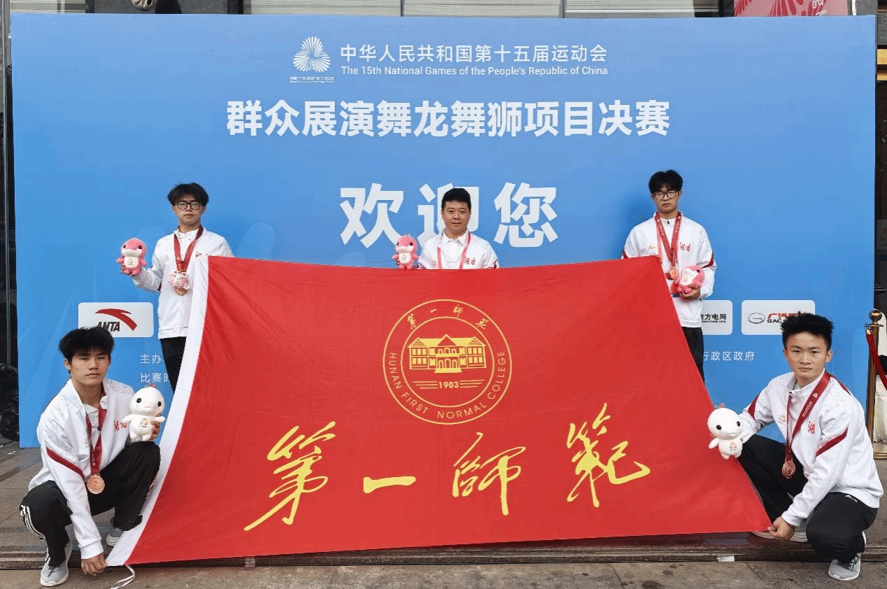 11月11日至14日,第十五届全国运动会群众展演舞龙舞狮项目决赛在广东佛山岭南明珠体育馆举行。由我校体育学院教师崔建彪担任主教练,我校2023级高招武术班刘飞、彭铭皓、李文杰、刘金平4名同学和湖南师范大学龙狮队4名同学组成的湖南省代表队,凭刚劲表演与默契配合,斩获全国三等奖。