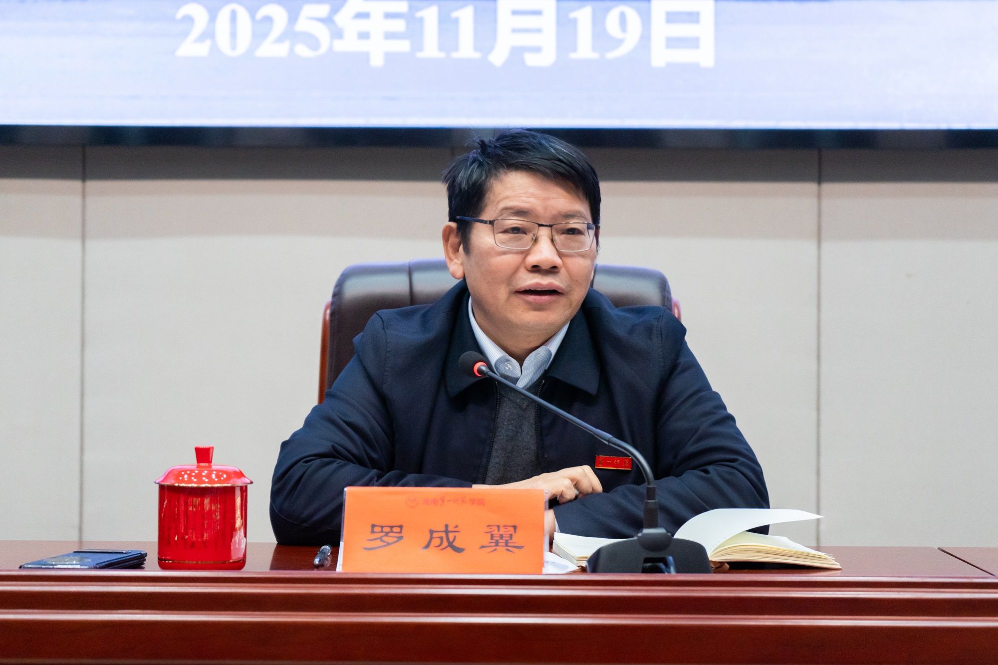 教育部本科教育教学审核评估专家组组长、四川师范大学原校长汪明义等19位评估专家,湖南省委教育工委委员、省教育厅党组成员、副厅长兰勇等3位教育厅领导线上出席会议。我校全体在家校领导线下出席会议。