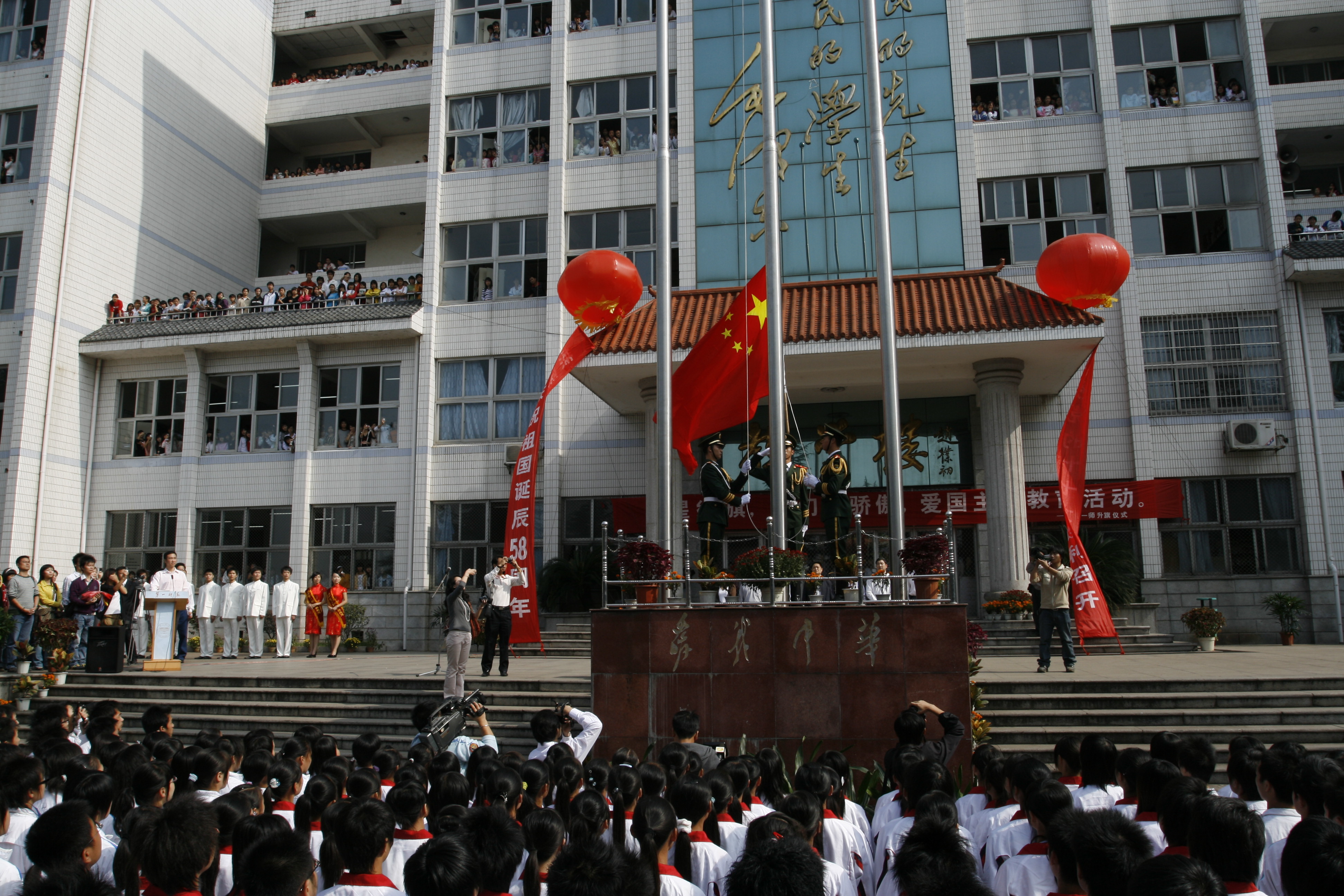 2007年10月8日,北京天安门国旗护卫队战士在我校城南书院校区举行庄严而隆重的升国旗仪式。