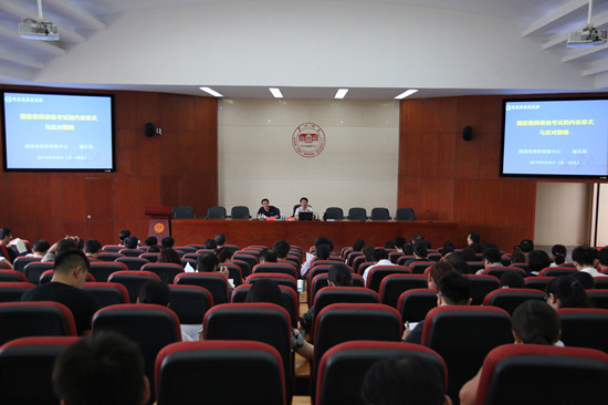 会上,谢先国教授就全国教师资格考试的基本情况、考试的内容与形式以及应对策略三个方面进行了系统而详实的阐述。提出了调整教学目标、重设课程体系、制定课程标准、选择适合的教材、改进教学方式和侧重能力导向六个应对策略,让全体参会人员对全国教师资格考试有直观而深入的认识。