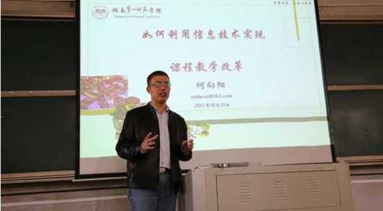 为推进信息技术与教育教学的深度融合,探索“翻转课堂”教学模式改革,充分发挥青年骨干教师的辐射和示范作用,10月31日下午,教务处举办了一场翻转课堂教学示范课观摩活动。示范课由我校信息科学与工程学院教师何向阳教授主讲。各院部100余名任课教师及全校在线课程建设项目负责人、教务处负责人等参加观摩。