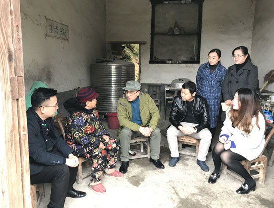 招生就业处党支部一行6人在我校驻村扶贫工作队鲁云生同志的陪同下,来到白泥村结对帮扶贫困户左月娥家中进行慰问,并送去了产业扶贫基金。支部书记周大庆与左月娥拉家常,并详细询问了她的身体状况和生活中遇到的困难,了解了今年养鸡的情况,并表示,年前确保将其饲养的20只土鸡由村部回收并销售完毕。左月娥对此表示衷心感谢。临别时,周大庆叮嘱左月娥多多保重身体,鼓励她坚定信心,克服一切困难,尽早脱贫致富,未来的生活会更加美好。