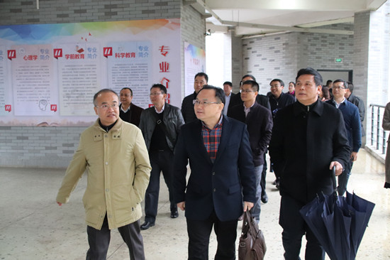 11月30日下午,广东省教育厅党组成员、副厅长王创一行来我校考察调研公费定向师范生培养情况。湖南省教育厅党组成员、副厅长王玉清参与调研。我校党委书记彭小奇陪同调研。