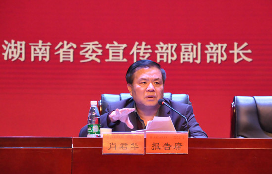 12月5日下午,省委宣讲团成员、省委宣传部副部长肖君华来我校作十九大精神宣讲报告。我校全体校领导、全体辅导员、马克思主义学院全体教师,各学院师生党员共1000余人参加。报告会在田汉剧场举行,由校党委书记彭小奇主持。