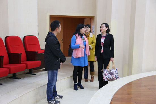 会后,柏丹一行人实地考察了我校音乐排练厅、美术画室、培训教室、培训公寓等教学生活设施。