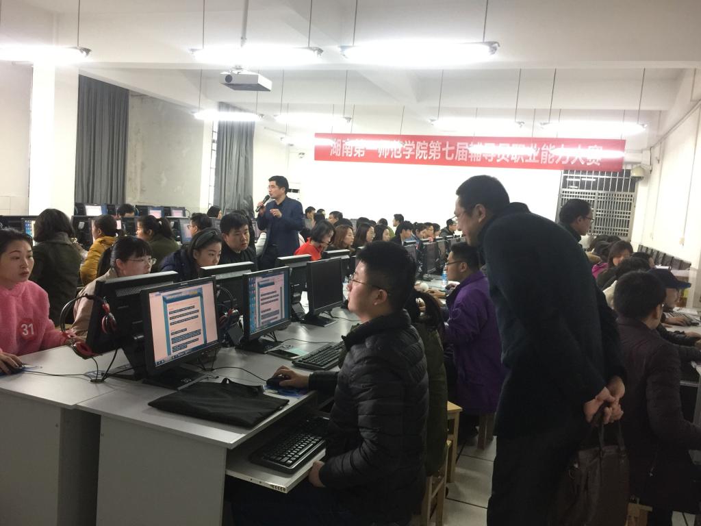 3月10日上午,初赛在特立楼计算机实验室进行。第一个项目“按图索骥”,电脑屏幕上整齐地显示出满屏的红底照片,辅导员们注意力高度集中地开始识别这100学生张照片,并根据自己对学生的熟悉了解快速地输入学生姓名。在案例分析环节,每位辅导员现场抽题,依次上台阐述自己观点和解决办法。例如,参赛选手杨老师抽到了案例分析25号题,关于凌晨学生交通死亡事件,杨老师深刻地分析了本次事故的发生原因并且全面详细地提出了解决办法,各个方面安排周全。