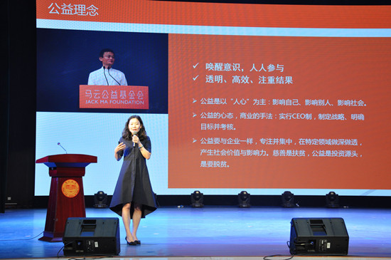 于秀红介绍了马云公益基金会坚守的宗旨——唤醒意识,人人参与整个过程能保持透明高效;秉持的理念——影响自己,影响他人影响社会;最终的目的——积极扶持乡村教育中的广大师生,为乡村教师提供发展的机会与平台。她还展示了从2015年开展的乡村教育计划项目体系。于秀红希望这个项目能带动社会各个方面的力量扶持乡村教育,标杆性地带动鼓舞每个乡村教师积极参与一线农村教育。