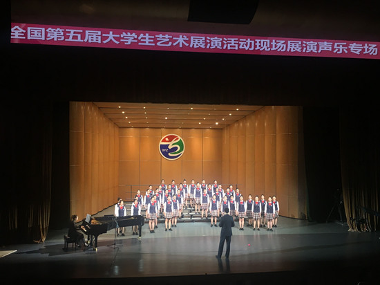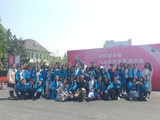 4月16日—21日,全国第五届大学生艺术展演活动现场展演在上海市举行。我校“六年制”学生合唱节目《青春舞曲——我不知道风是在哪一个方向吹》(指导老师:郭峥、易文颖、杨淇雅)、胡彪同学创作的篆刻作品《篆刻印屏》(指导老师:文佐)参加现场展演并分别获得艺术表演类节目一等奖、艺术作品一等奖,音乐舞蹈学院教师杨丹撰写的论文《音乐教师教育U-S共同体的构建:价值、途径与目标》荣获艺术教育科研论文二等奖,音乐舞蹈学院教师毕琼文的论文《永顺县小学民族民间音乐传承现状调查与研究》获艺术教育科研论文三等奖,“六年制”学生朗诵节目《梦想在没有路的山岗启航》(指导老师:李晖旭、杨昭昭、李颖)荣获艺术表演类节目三等奖,李格同学创作的绘画作品《夏有乔木》(指导老师:易鸽)荣获艺术作品三等奖,同时,我校荣获“高校优秀组织奖”,取得了自参加该项赛事以来的最好成绩。