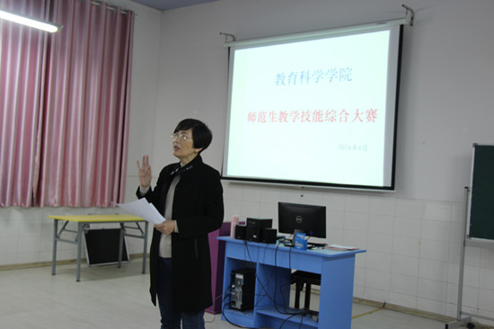 为进一步推动人才培养模式和实践教学的改革,加强学生教师职业技能培养,提高师范生教育教学能力,4月27日,教育科学学院在特立楼举行首届师范生教学技能综合大赛决赛。长沙育才学校校长朱爱朝、清水塘二小校长刘云燕、曙光小学校长胡锦华、一师一附小副校长余运群、雅礼实验中学方安琪、教育科学学院邓栩、戴小春、陈莉、谢立红、李金国担任评委。