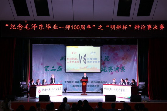 本次活动由校团委主办,从今年3月份开始启动,历时2个多月,旨在引导一师青年学子学习一代伟人毛泽东在母校求学时的雄辩风采和“改造中国与世界”的宏大志向。共有9个学院代表队参加了学院初赛、学校复赛和半决赛的选拔,最终文学与新闻传播学院辩论队和教育科学院辩论队胜利会师决赛。