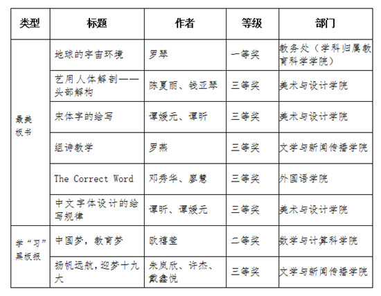 近日,湖南省第六届网络文化节 “最美板书传三湘”主题活动落下帷幕,“最美板书”和“学‘习’黑板报”评选结果揭晓。我校师生在本次活动中取得佳绩,共有8件作品获奖。其中,一等奖和二等奖作品各1件,三等奖作品6件。