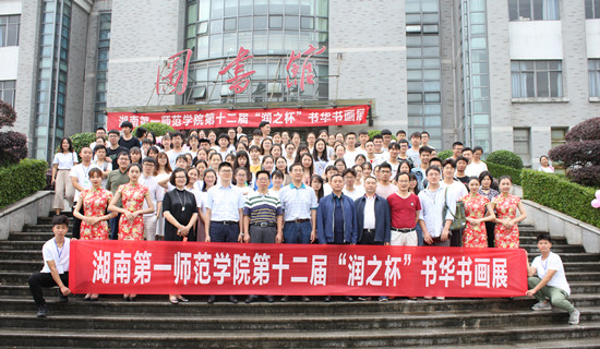 5月27日上午,我校第十二届“润之杯”书华书画展在学校图书馆开幕。副校长江正云、湖南书法家协会理事、湖南青年书法家协会副主席易佳、湖南书法家协会理事、《湖南书法年鉴》主编罗健、湖南书法家协会理事、《湖南书法网》主编颜伟、学校图书馆、美术与设计学院相关负责人和指导教师出席开幕式。