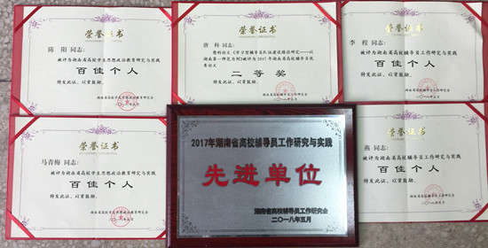 5月25日,在长沙民政职业技术学院举办的2018年湖南省高校学生思想政治教育研究会、湖南省高校辅导员工作研究会年会上获悉,我校荣获2017年湖南省高校辅导员工作研究与实践先进单位;我校文学与新闻传播学院罗燕老师、城南书院李程老师被评为2017年湖南省高校辅导员工作研究与实践百佳个人;外国语学院陈阳老师、数学与计算科学学院马青梅老师被评为2017年湖南省高校学生思想政治教育研究与实践百佳个人;文学与新闻传播学院唐科老师的论文《学习型辅导员队伍建设路径研究——以Kaiyun官方网站登录入口为例》被评为2017年湖南省高校辅导员优秀论文“二等奖”。