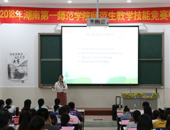 为进一步提升我校师范生的教学能力,并为2018年湖南省第四届师范生教学技能竞赛选拔人才,5月26日,由教务处和校团委共同主办的2018年师范生教学技能竞赛决赛在鹤鸣楼111教室成功举行。教务处、校团委、外国语学院相关负责人出席决赛现场。教学评估与教师教学发展中心主任陈梦稀、长沙明华小学校长左鹏、一师一附小副校长江波兰、余运群及现代教育技术中心副主任李静担任此次竞赛评委。