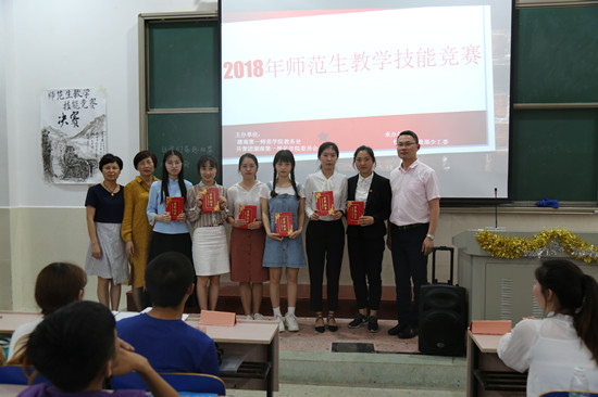 经过激烈角逐,信息科学与工程学院伏贝、教育科学学院周桂平、唐文慧获得一等奖,外国语学院李诗琴等6人获得二等奖,教育科学学院周钦璇等9人获得三等奖。获奖的18名选手将参加统一培训,推荐参加下半年湖南省第四届师范生教学技能竞赛。