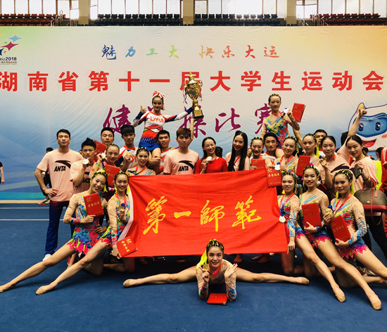 9月17日,省第十一届大学生运动会健美操项目比赛落下帷幕。我校由体育学院院长黄依柱任领队,王京琼、罗婕、黄子敬3位老师任教练的健美操队,在本次比赛中勇夺5金1铜,并连续五年蝉联该项目学院组的团体冠军,再次为学校赢得了荣誉。