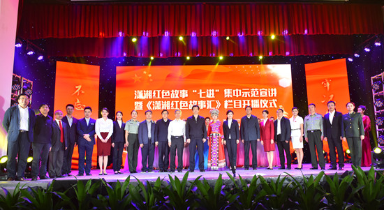 10月至12月,省委宣传部联合有关单位在全省开展“不忘初心、牢记使命”潇湘红色故事进企业、进农村、进机关、进校园、进社区、进军营、进网络活动。接下来,由全省爱国主义教育基地优秀讲解员组成的“潇湘红色故事宣讲团”,将分赴各市州进行宣讲,通过一个个红色故事,传承红色基因,凝聚向上向善、奋发有为的正能量。同时,湖南广播电视台公共频道制作了《潇湘红色故事汇》进行播出。