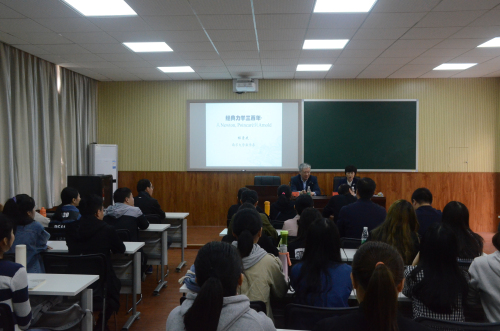 10月24日上午,教育部长江学者特聘教授、南京大学程崇庆教授应邀来我校做了题为“经典力学三百年:从Newton, Poincare到Arnold”的学术讲座。讲座由校长童小娇主持,数学与计算科学学院院长欧阳章东及部分师生共60余人参加了本次讲座。