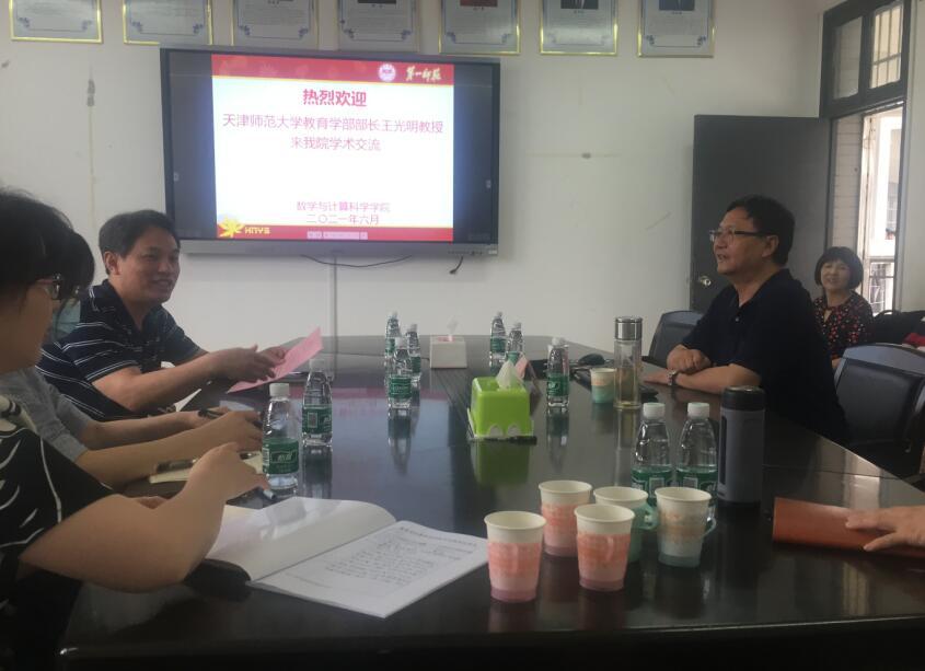 6月10日上午,天津师范大学教育学部部长、博士生导师,教育部“国培计划”首批专家,《数学教育学报》主编王光明教授应邀来我校讲学。王光明教授在玉衡北302室做了题为“数学学习测评工具研发及其实践应用”的精彩学术报告。报告会由数计院党总支书记曾玉华主持,数计院数学教育团队教师、润之班部分学生等40余人参加了报告会。