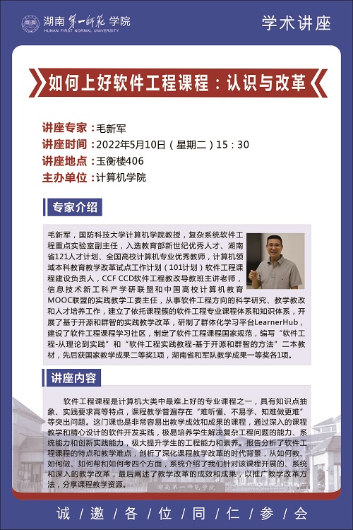 上一篇:国防科技大学计算机学院毛新军教授应邀来我校讲学