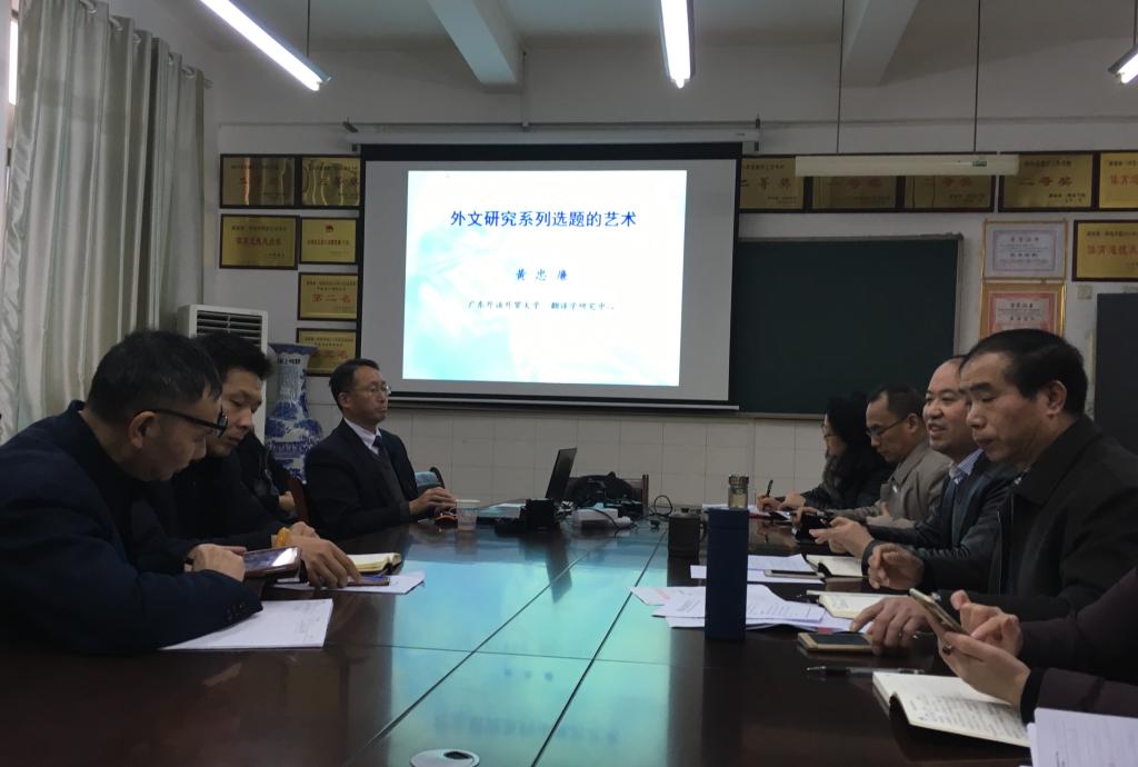 3月19至21日,广东外语外贸大学黄忠廉教授应邀来我校指导外语学科建设,在校期间,外国语学院紧密组织了包括讲座、座谈、单独指导等活动,旨在促进我校外语学科的发展和教师个人科研水平和能力的提高。
