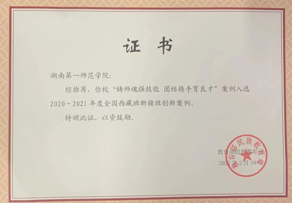 近日,由教育部民族教育司征集的内地西藏班新疆班典型案例评选结果出炉,我校报送的“铸师魂强技能,团结携手育良才”成功入选“2020-2021年度全国西藏班新疆班创新案例”。