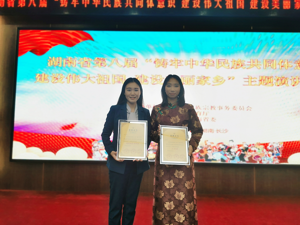 5月30日,由湖南省民宗委、省教育厅、共青团湖南省委联合举办的湖南省第八届“铸牢中华民族共同体意识 建设伟大祖国 建设美丽家乡"主题演讲比赛在长沙顺利举行。我校教育学院21级894小学教育西藏班学生旦增曲珍获得高校组二等奖,教育学院分团委书记、辅导员孙三元获优秀指导老师奖。