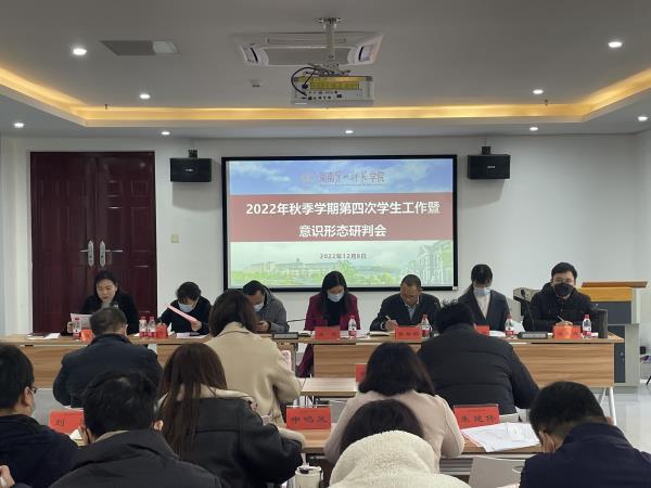 12月8日上午,我校召开2022年秋季学期第四次学生工作例会暨意识形态工作研判会。校党委委员、副校长蒋蓉出席。会议由学生工作部部长张福国主持。