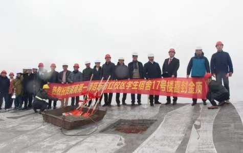 3月24日上午,我校东方红校区学生宿舍17号楼项目主体如期顺利封顶。校党委委员、副校长周发明出席封顶验收活动。学校相关职能部门负责人及代表,勘察、设计、监理、施工等参建单位代表参加活动。