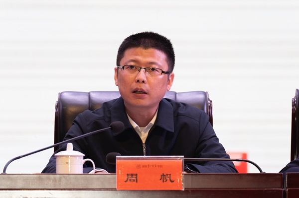 湖南大学学生会执行主席姜博钧代表兄弟高校致贺词。