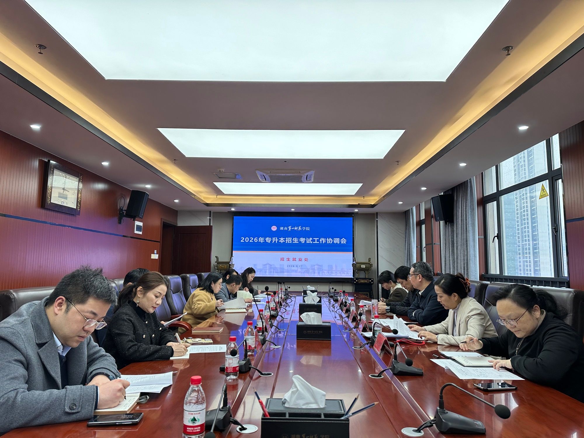 3月27日下午,我校2026年专升本招生考试工作协调会在百熙楼713会议室召开。校党委委员、副校长彭晓辉出席会议,招生考试相关职能部门及相关学院代表参加会议。