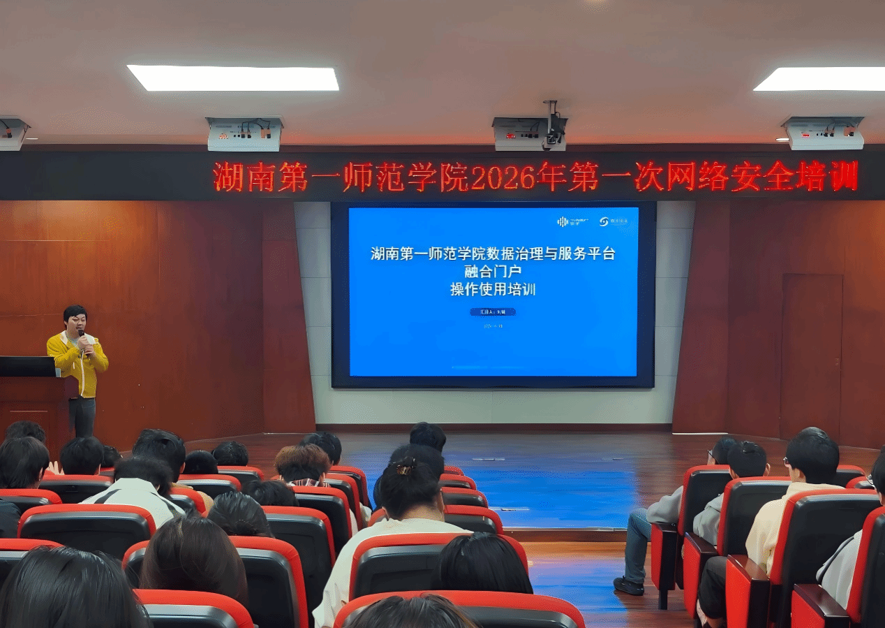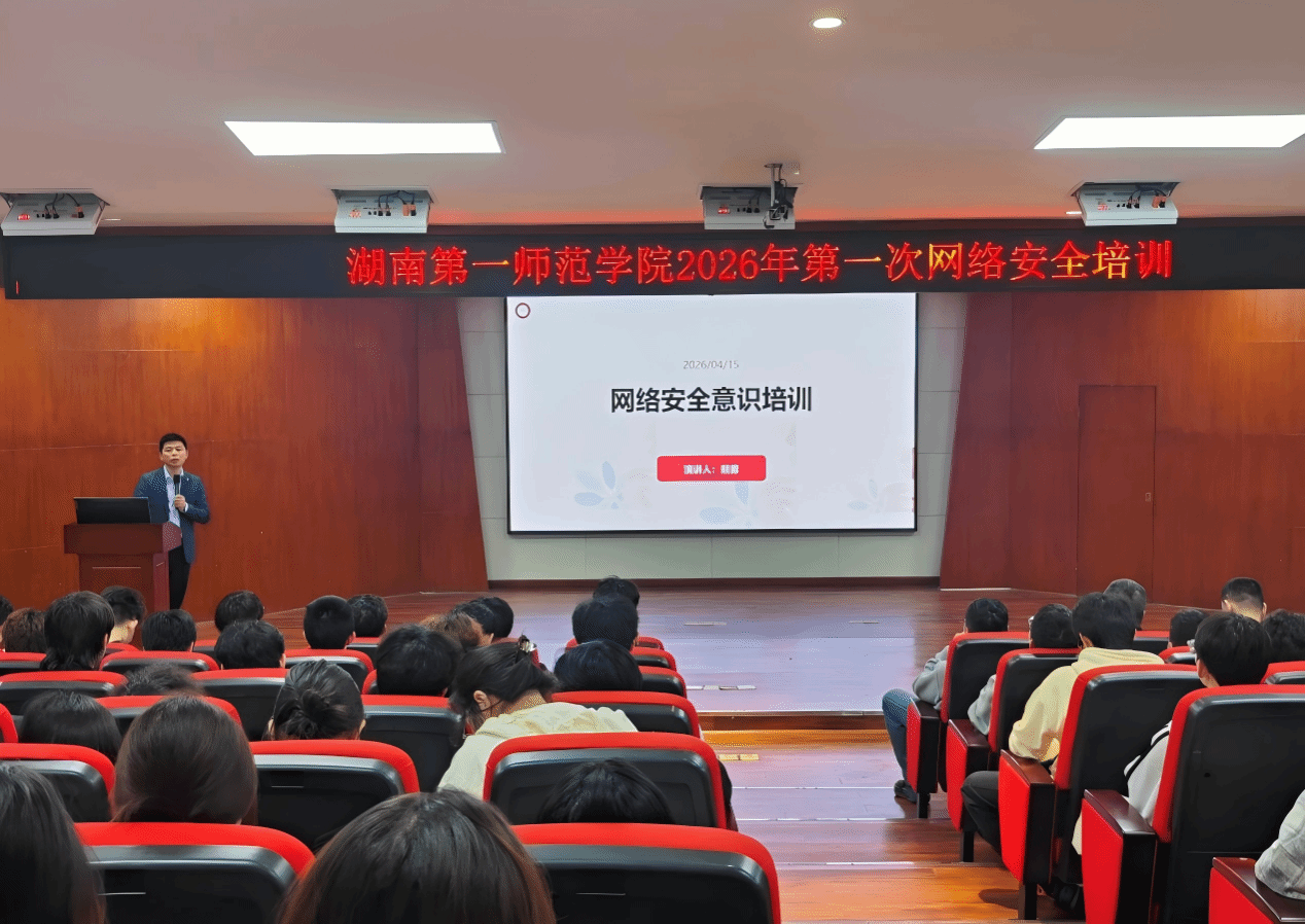 为全面提升全校师生网络安全防护意识与应急处置能力,熟练掌握校园信息系统使用方法,筑牢校园网络安全屏障,4月15日下午,我校2026年第一次网络安全培训在特立楼南栋112举办。本次培训由现代教育技术与网络中心主办,湖南省网安基地科技有限公司、广州联奕科技有限公司协办,各二级单位信息员及学生代表共130余人参加。现代教育技术与网络中心负责人主持培训。