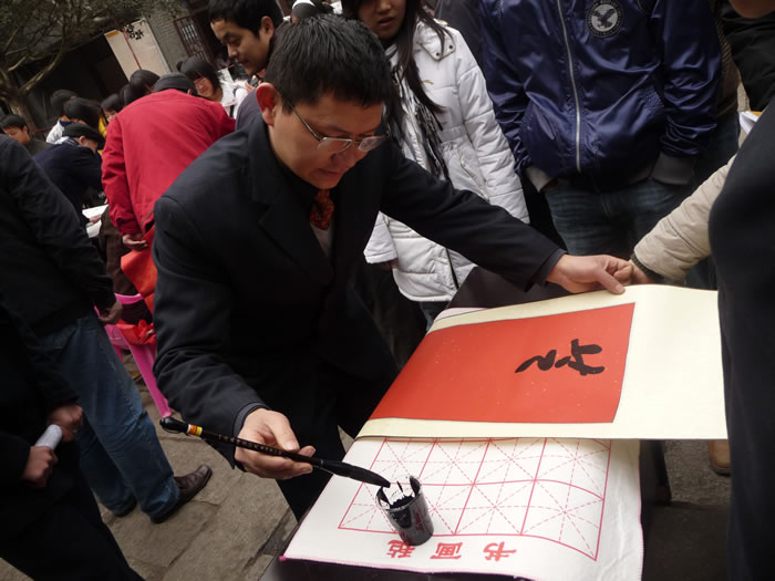 本活动还特邀了长沙市7位书坛老将现场撰写对联,赠送给社区居民,整个场面充满了翰墨书香。虽然天冷但大家激情似火,索求墨宝的人络绎不绝。