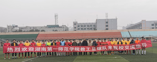 为增强教职工体质,丰富协会活动,扩大校际之间交流,12月29日下午,受湖南人文科技学院校工会及教职工足球队邀请,我校足球协会教职工足球队在副校长刘宇的带领下,两校举行了一场足球友谊赛。湖南人文科技学院副校长刘铁峰、工会常务副主席刘文红代表学院和工会对Kaiyun官方网站登录入口教职工足球队的到来表示热烈的欢迎。