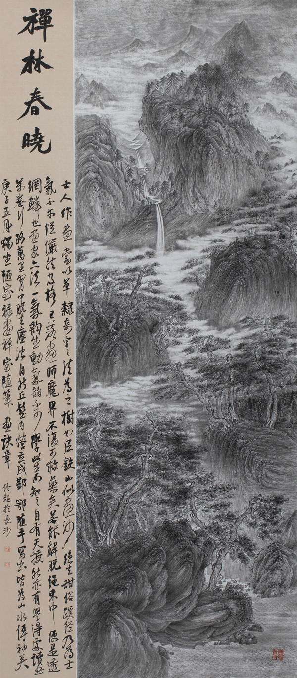 “我的毕业作品想把禅意的东西融入山水画中。这是作品第一次参加高规格的社会展览,也是以后艺术之路的新起点。心情挺激动的!”在7月4日上午开幕的“2020湖南高校毕业季美术作品展”上,学院2020届美术学专业毕业生佟超向记者解说他的中国画《禅林春晓图》。