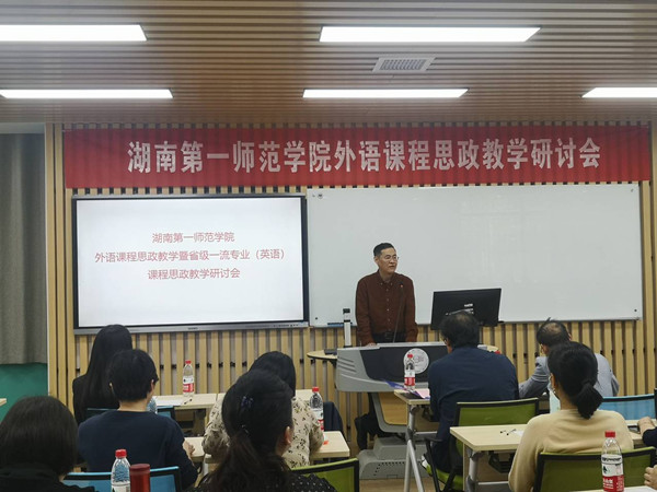 10月13日下午,我校外语课程思政教学暨省级一流专业(英语)课程思政教学研讨会在东方红校区特立楼北智慧教室举行,副校长江正云参加研讨会。会议由外国语学院党总支书记李亚林主持。