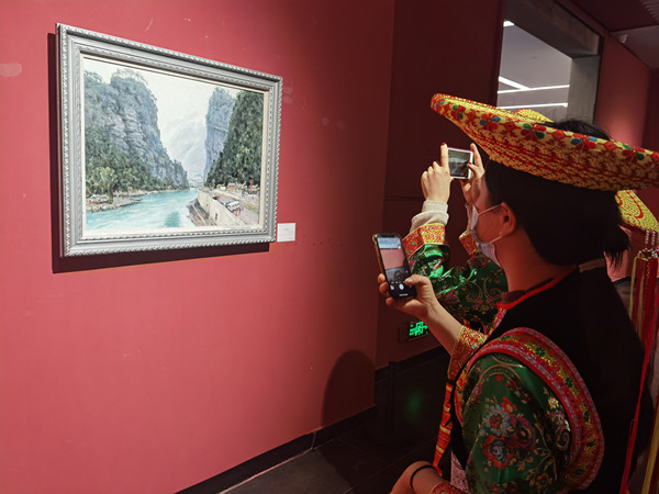 在画展开幕式,彭小奇致辞并宣布开幕。他充分肯定了艺术家们的成果,现场精选了精准扶贫行动中具代表性,富影响力、感人至深的扶贫事迹作品,全面展示了精准扶贫行动中战天斗地的扶贫精神、感天动地的扶贫事迹、欢天喜地的脱贫新貌、改天换地的减贫案例,这个油画展是精准扶贫成果的一个高度凝练和总结,更是一个特殊的展览,是一本艺术家们书写在大地之上的艺术之书。